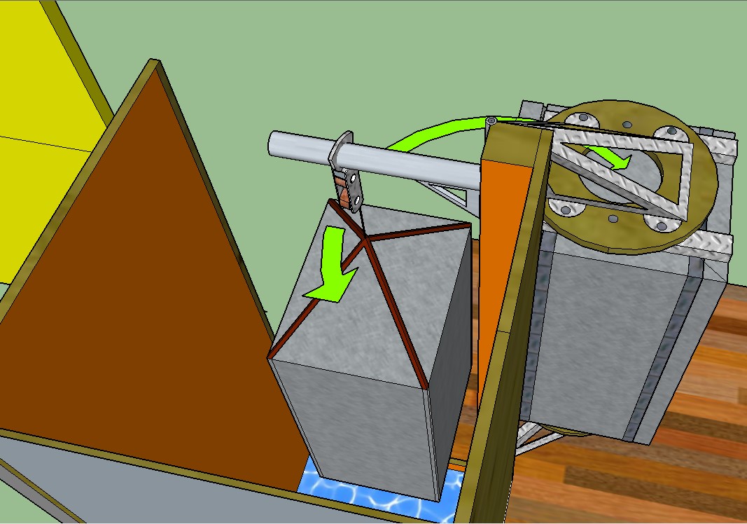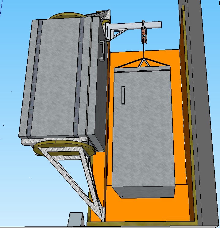 Entre la potence et le frigo,il faudra utiliser une double poulie de mouflage avec une petite corde ou un tout petit treuil électrique (j’en ai pas trouvé des tout petits et de léger)