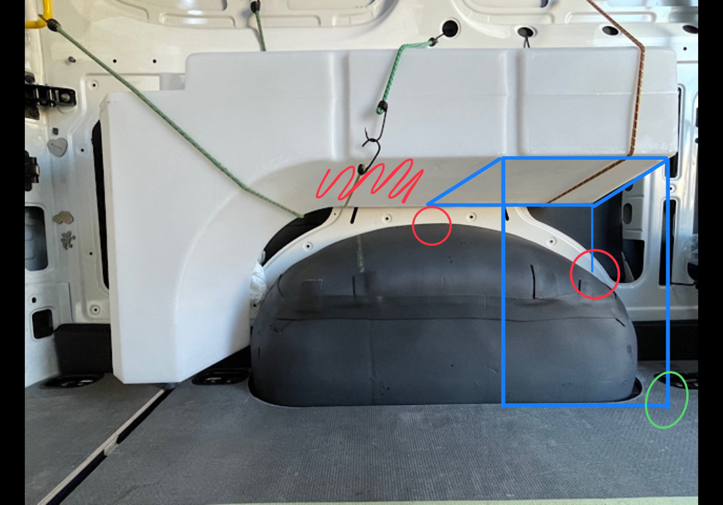 C’est joli ce que tu proposes pour bloquer. Mais je vais prendre une photo tout à l’heure… il me semble que le réservoir ne s’arrête pas après le passage de roue, c’est bien ça le problème ! Il me semble qu’il finit pile dans l’arc qui redescend vers le plancher…Effectivement les dos d’âne sont une calamité 😡🤬 Outre qu’ils nous secouent le squelette, ils cascaillent énormément le 🚐. Bien plus qu’une 🚙 !